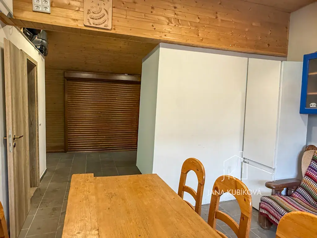 Průjezd vede ke garáži s dílnou, sprchou a WC – ideální prostor pro podnikání, řemeslo, koníčky nebo samostatné technické zázemí.