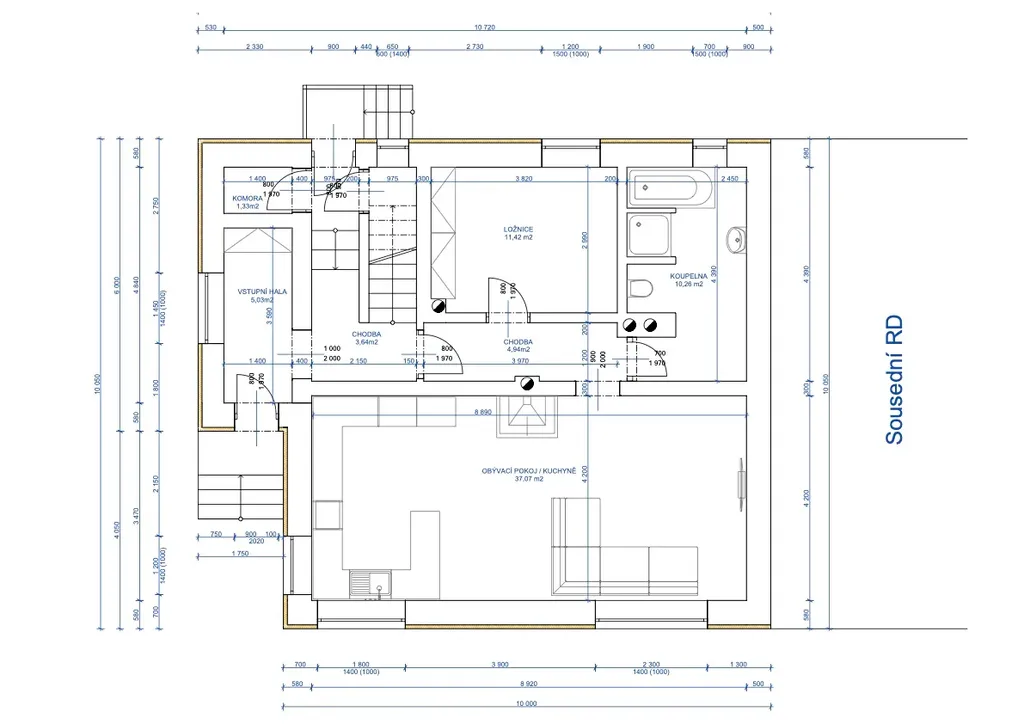 Přízemí – 2+kk + sociální zázemí