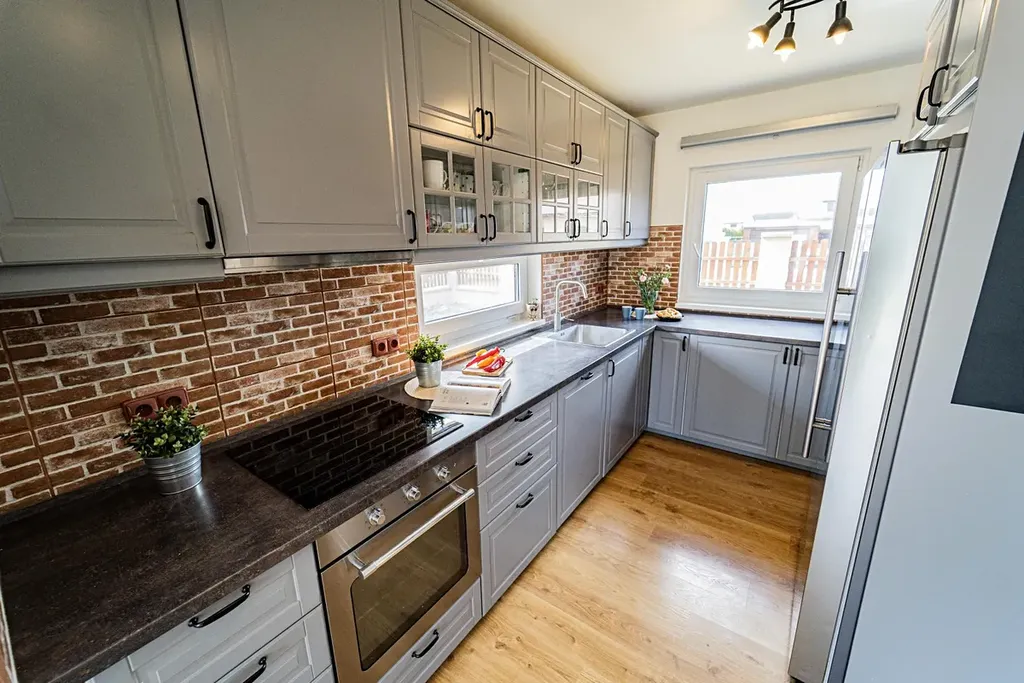 V přízemí se nachází prostorný obývací pokoj propojený s kuchyňským koutem, ložnice, koupelna se sprchovým koutem a vstupní hala. V patře naleznete tři samostatné pokoje, toaletu a koupelnu s vanou.
