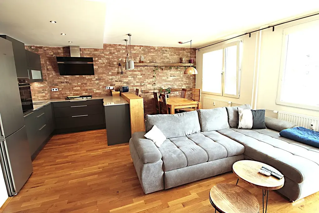 Praha 4 – Modřany, nabízíme k dlouhodobému pronájmu velmi pěkný byt 3+kk s lodžií, po rekonstrukci, ve 2. NP domu bez výtahu. Prostorný obývací pokoj je propojen s moderním kuch. koutem. Z obývacího pokoje je vstup na lodžii (J). Světlá koupelna, díky oknu, se sprchovým koutem a WC s umyvadlem je zvlášť. Dům se nachází na oploceném pozemku s vlastní zahradou. U domu je možnost parkovat na místě patřící k domu. Úložný prostor skvěle řeší vestavěné skříně, šatní skříň v jedné z ložnic a především komora umístěná vedle bytu a sklípek v suterénu domu. Byt je vybaven, zařízen, k dispozici je dvojlůžko, velká sedací souprava, chladnička s mrazákem, myčka nádobí, trouba, plynový sporák, digestoř, pračka. Tento byt je k dispozici od 1.5. 26.