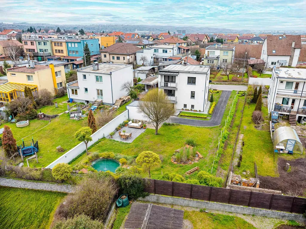 K domu náleží rozlehlý pozemek o výměře 822 m², který skýtá možnost relaxace i aktivního využití. Výhodou nemovitosti je také sklep o ploše 30 m², který poskytuje dostatek úložného prostoru. Pro parkování zde najdete nejen možnosti na pozemku pro šest vozů, ale také dvě garáže, což přináší komfort a bezpečnost pro Vaše auta. Na zahradě je vzrostlý vinohrad, ovocné stromy a základy na skleník a udírnu.