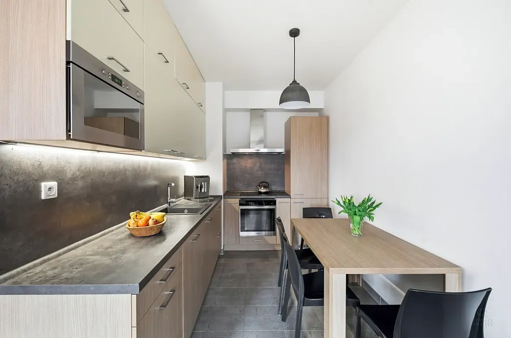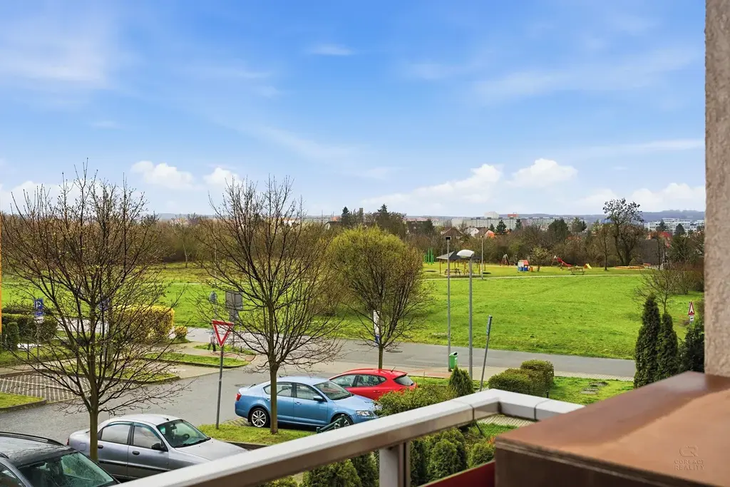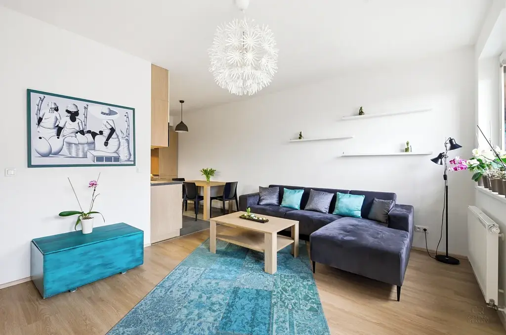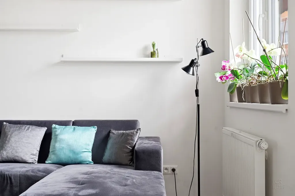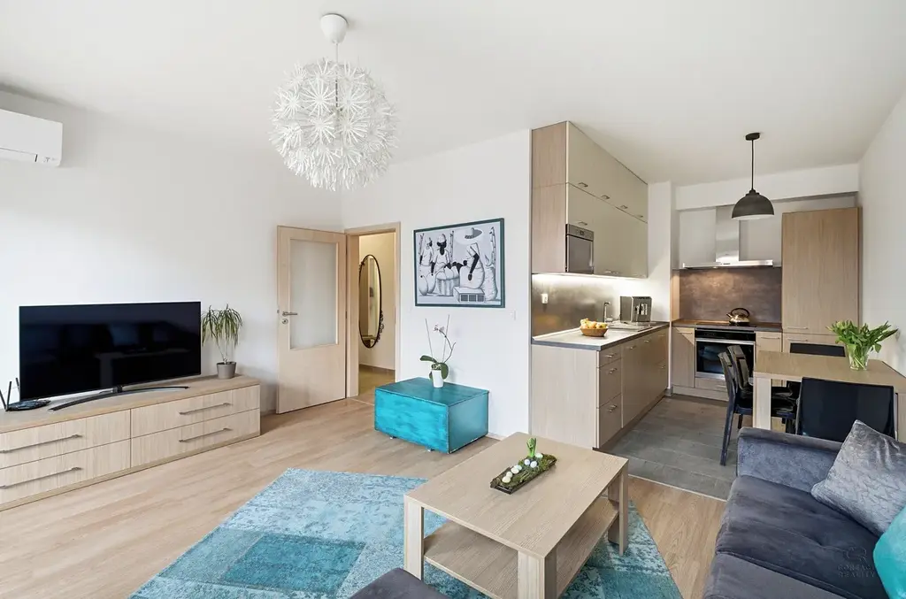 Díky dobré orientaci je byt příjemně prosvětlený po celý den. Kuchyňský kout je vybaven základními spotřebiči a poskytuje dostatek prostoru pro vaření i stolování. Obývací část navazuje na kuchyni a tvoří příjemné centrum bytu. Ložnice jsou