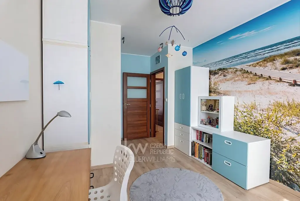 - Další dvě ložnice jsou orientovány na jih, poskytují tak dostatek denního světla po celý den. Mohou sloužit jako dětské pokoje, každá až pro dvě děti, nebo se z jedné může stát pracovna či pokoj pro hosty.