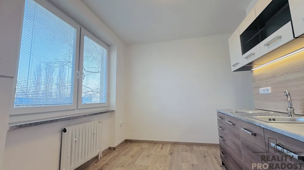 Dispozice bytu : vstupní chodba, prostorná šatna, koupelna se sprchovým koutem, samostatná toaleta, dětský pokoj, kuchyně s jídelnou je zařízena kuchyňskou linkou, plynovým sporákem s elektrickou troubou, ložnice, obývací pokoj se vstupem na balkon. Vytápění a ohřev vody zajišťuje plynový kotel.