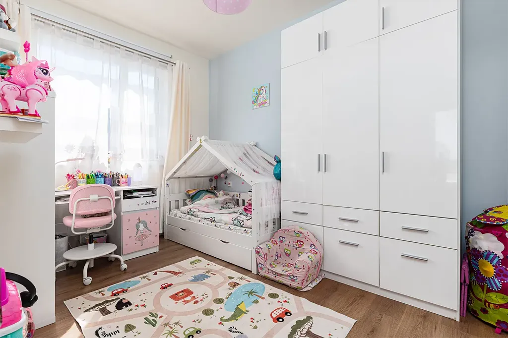 Dispozice bytu je navržena tak, že z prostorné předsíně je přímý vstup do všech obytných místností.