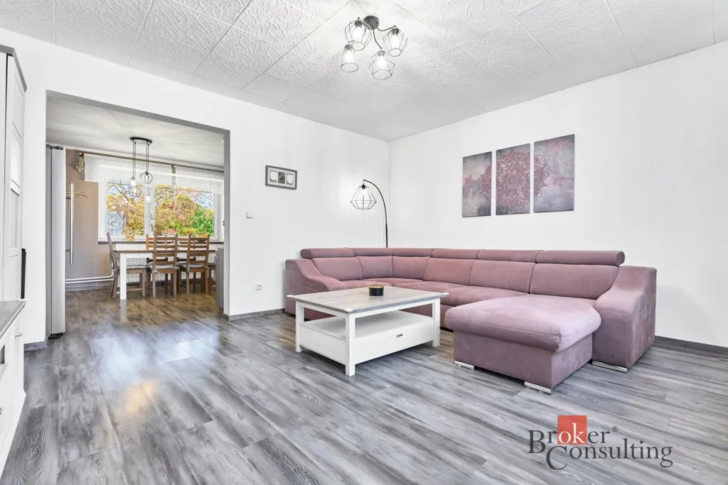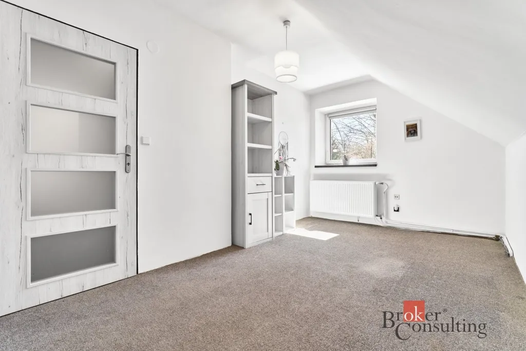 Dispozice domu je prakticky řešena. V přízemí se nachází kuchyň s jídelním prostorem navazující na obývací pokoj, dále koupelna, samostatná toaleta a místnost, kterou lze využít jako pracovnu nebo ložnici. V patře je hlavní ložnice s balkonem navazující na šatnu či pracovnu a dva samostatné dětské pokoje. Součástí domu je také sklep o velikosti 25 m² a půdní prostor se zatepleným stropem.
