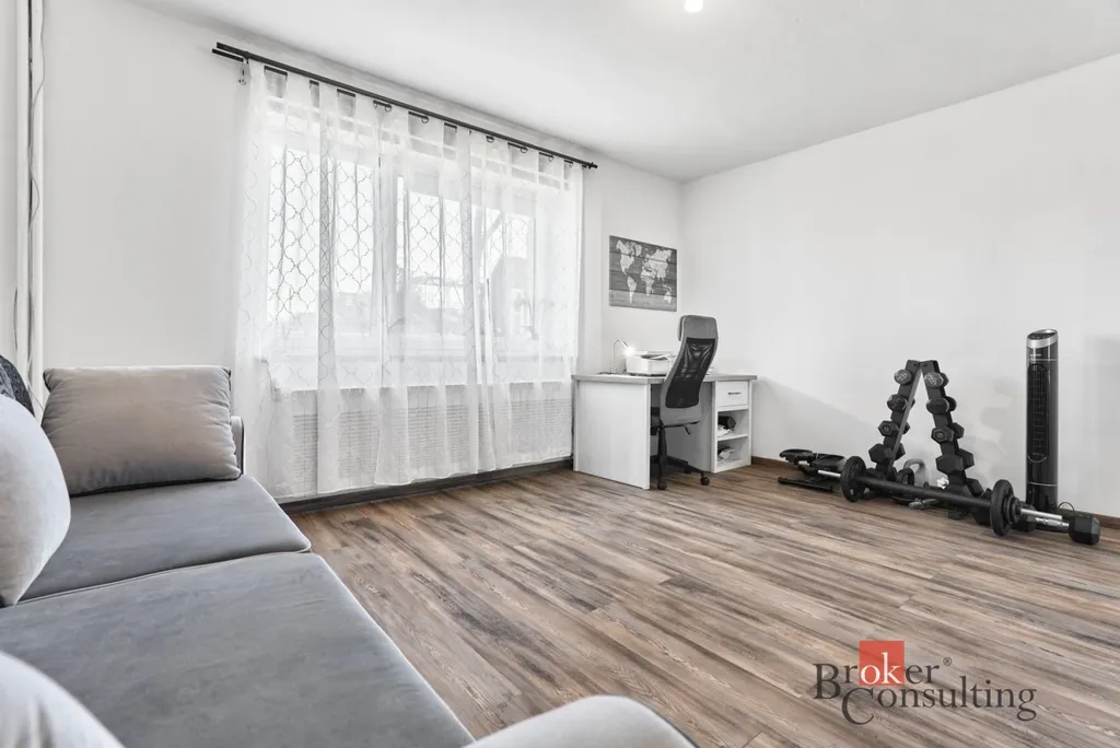 Vytápění je řešeno moderním tepelným čerpadlem vzduch–voda značky Toshiba, což výrazně snižuje provozní náklady domu. Velkým benefitem je kuchyňská linka na míru včetně spotřebičů, přičemž dům může zůstat kompletně vybavený dle dohody.