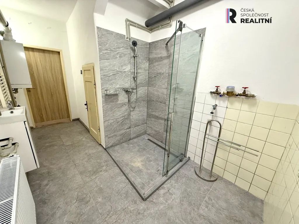 Koupelna není přímo součástí bytové jednotky a je přístupná ze společné chodby, což může být méně praktické, avšak v rámci rekonstrukce je možné dispozici upravit a koupelnu začlenit přímo do bytu.