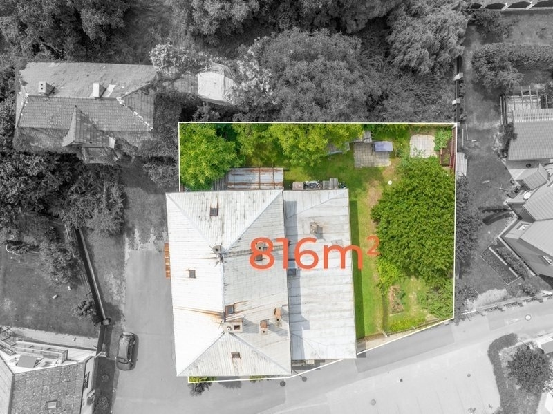 Cihlový dům o ploše 315 m2 má dvě patra a půdu, kterou lze přebudovat na další bytovou jednotku.