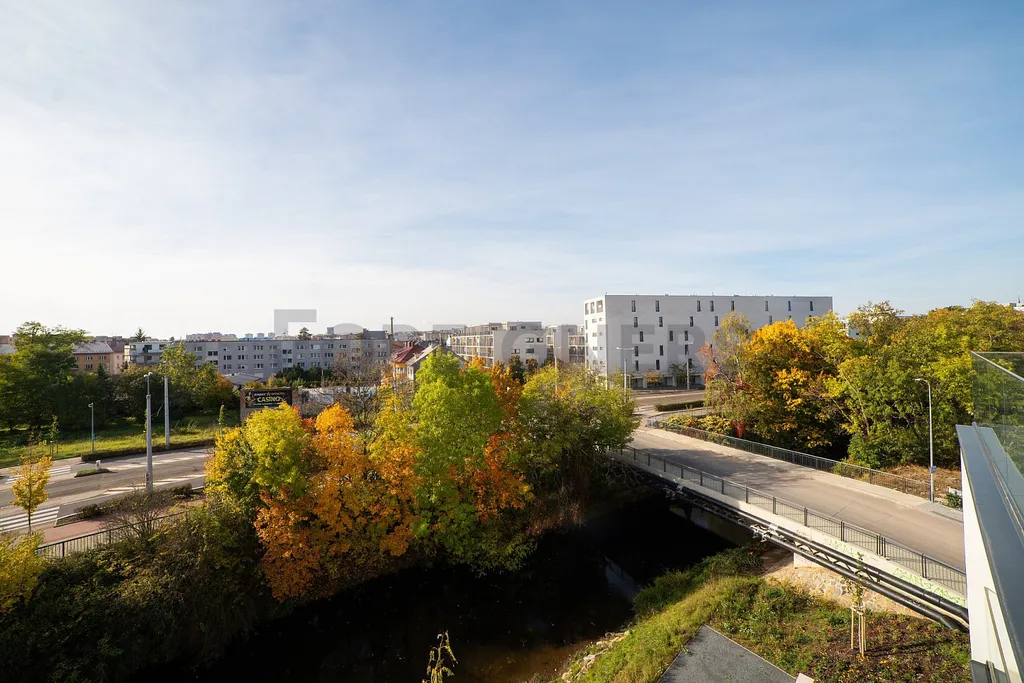 Dřevěné dubové podlahy s podlahovým vytápěním dodávají bytu útulný a příjemný vzhled a tepelný komfort, tak jako hliníkové okna s trojskly a venkovní integrovanými žaluziemi, které Vám umožní regulovat množství světla v bytě podle vašich preferencí.