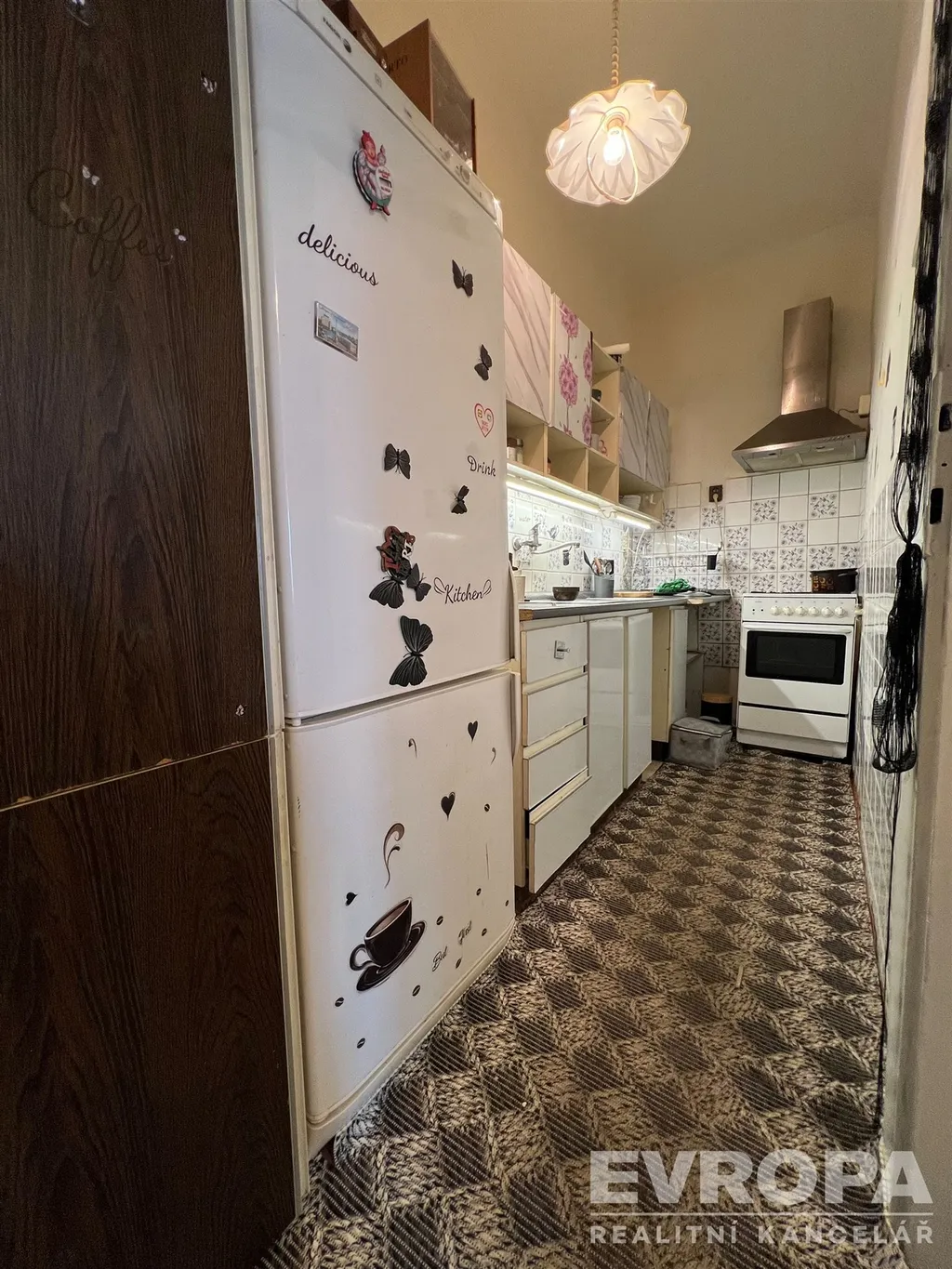 Byt je v původním, avšak velmi udržovaném stavu. K dispozici je sdílená prádelna v suterénu domu, což šetří místo přímo v bytě.