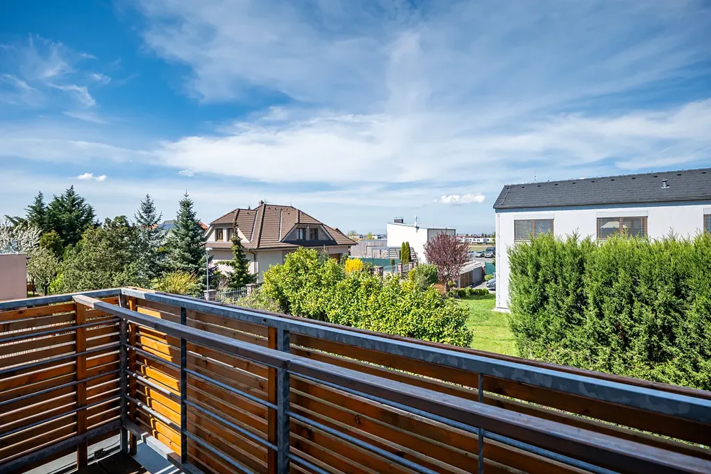 • Patro: tři ložnice, pracovna, prostorná koupelna s vanou i sprchovým koutem, samostatné WC a horní terasa.