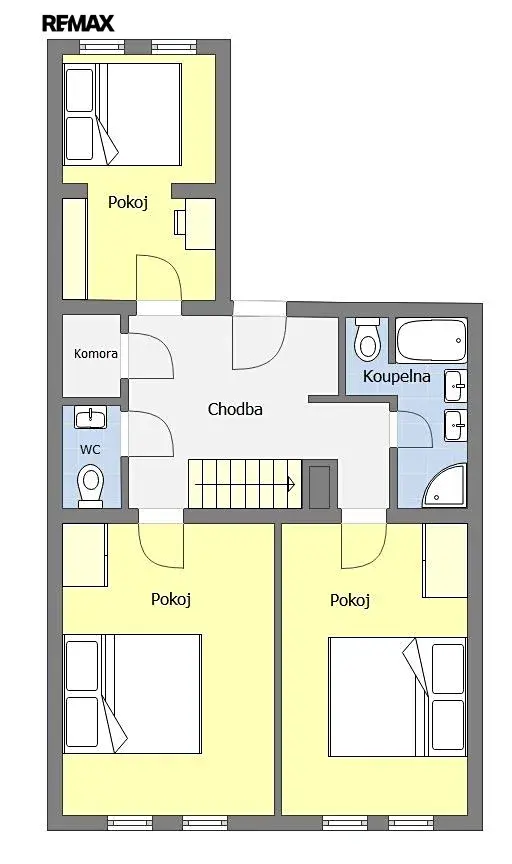 Celková plocha prodávaných prostor je 166m2. Ve spodní části mezonetu se nacházejí 3 samostatné neprůchozí pokoje, koupelna s vanou i sprchovým koutem, dvěma umyvadly a toaletou. Další toaleta s umyvadlem je jako samostatná místnost.