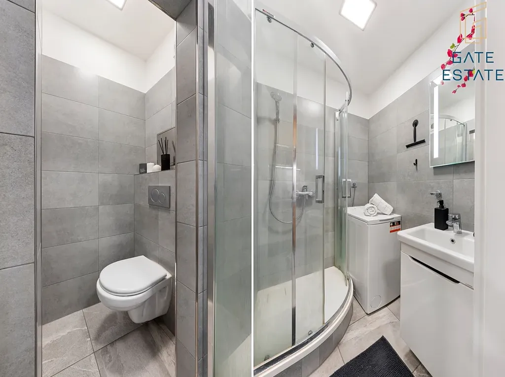 Kuchyně je samostatná a vybavená linkou na míru včetně vestavěných spotřebičů značky BOSCH. Koupelna je řešena prakticky – sprchový kout, toaleta a prostor pro pračku.