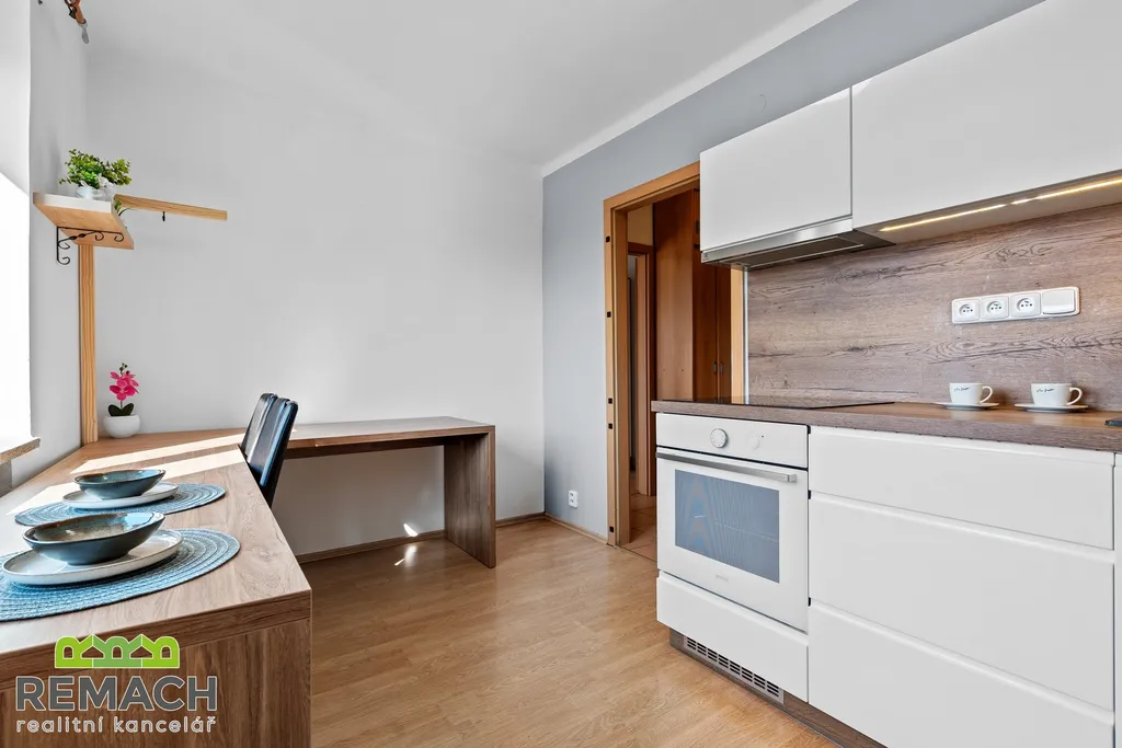 Z kuchyně s jídelnou je vstup do obývacího pokoje. Byt je k dispozici ihned.