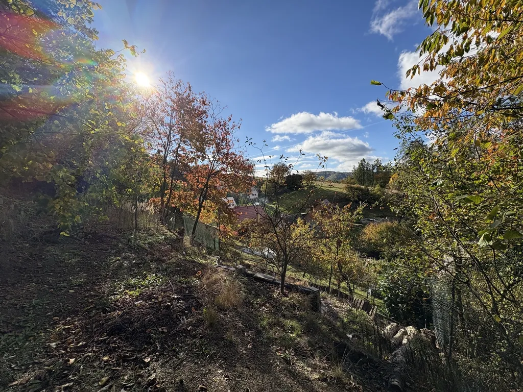 Terén je svažitější, což představuje zajímavou výzvu pro budoucího majitele – nabízí ale možnost vytvořit originální projekt chaty zapuštěné do terénu s terasou a maximálním využitím výhledu.