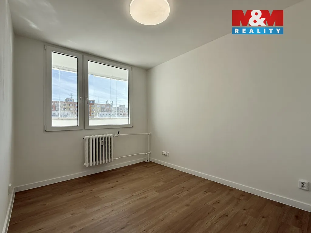 Moderní, nově zrekonstruovaný byt 2+kk o celkové ploše 49,5 m² v 7. (posledním) patře panelového domu s výtahem.