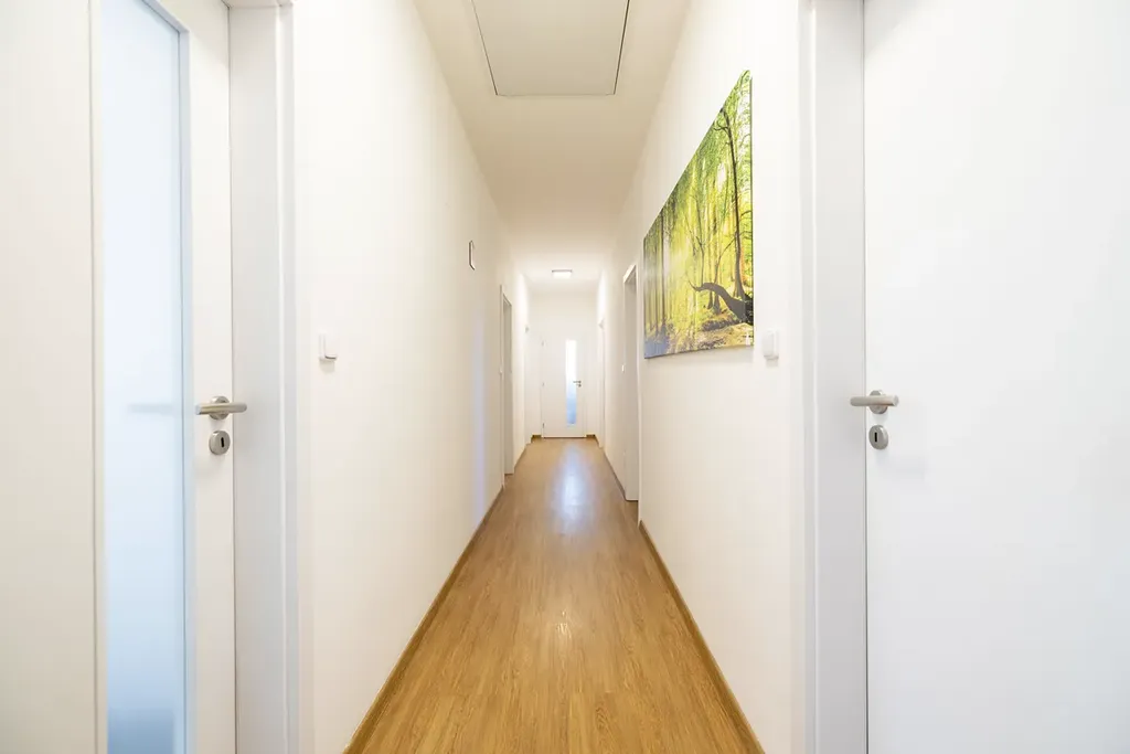 Z technologií je zde dále jednotka na změkčování vody, solární panely na ohřev vody, alarm značky Jablotron, klimatizace a v neposlední řadě i předokenní žaluzie a retenční nádrž na dešťovou vodu. Energetická třída domu B.