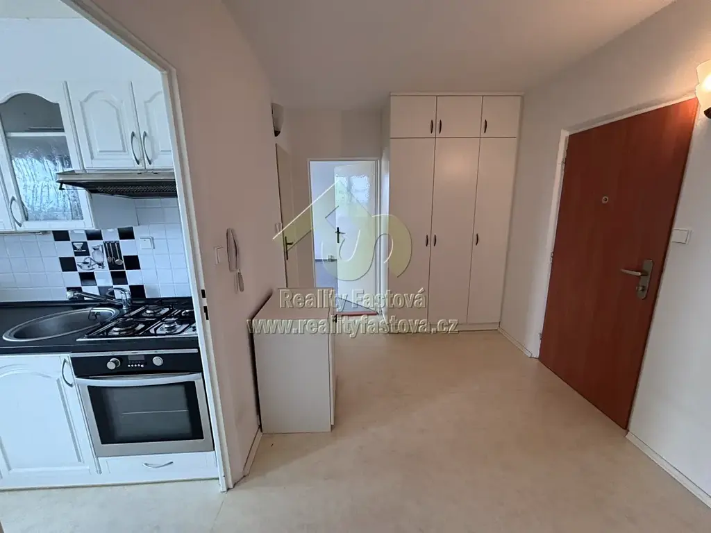 Dispoziční řešení – vstupem do bytu vejdeme do velké prostorné předsíně čtvercového tvaru, kde jsou k dispozici vestavěné šatní a botní skříně. Tato předsíň je v centru bytu a na každé straně vlevo a vpravo má byt vždy jeden samostatný neprůchozí pokoj. Uprostřed se nachází zděné jádro se samostatnou koupelnou s vanou, se vstupem z kuchyně a samostatnou toaletou, se vstupem z předsíně bytu.