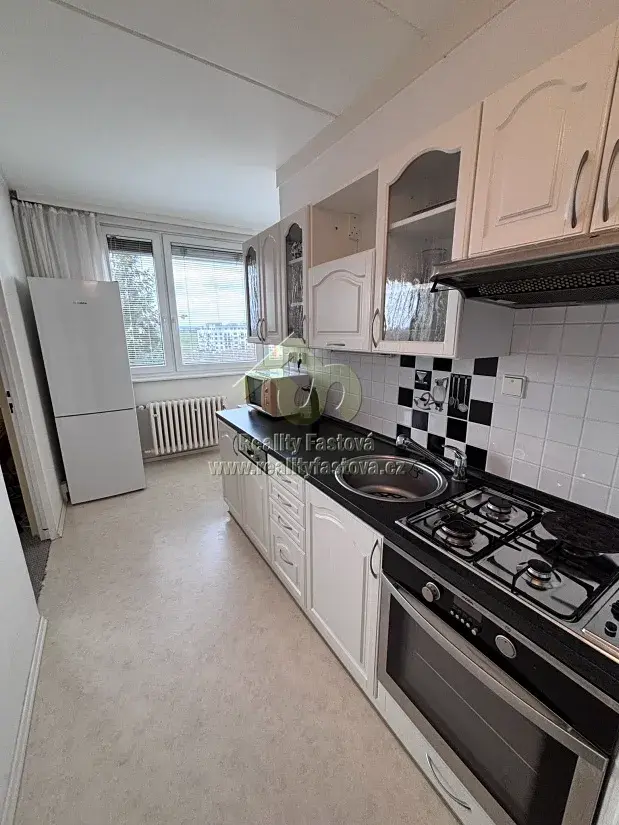 Kuchyně je do tvaru „L“ a je vybavena kuch.linkou vč.spotřebičů – plynovým sporákem s el. troubou, digestoří, myčkou, lednicí s mrazákem a mikrovlnou troubou. A včetně veškerého kuch.nádobí. V koupelně je mimo jiné i k dispozici pračka.