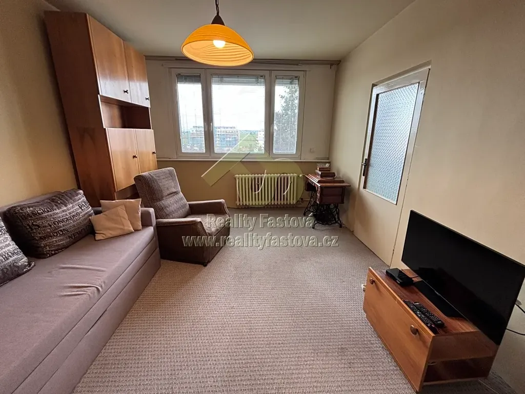 Byt je nabízen včetně vybavení dle fota. Prostorný obývací pokoj má vstup jak z předsíně, tak i z kuchyně.