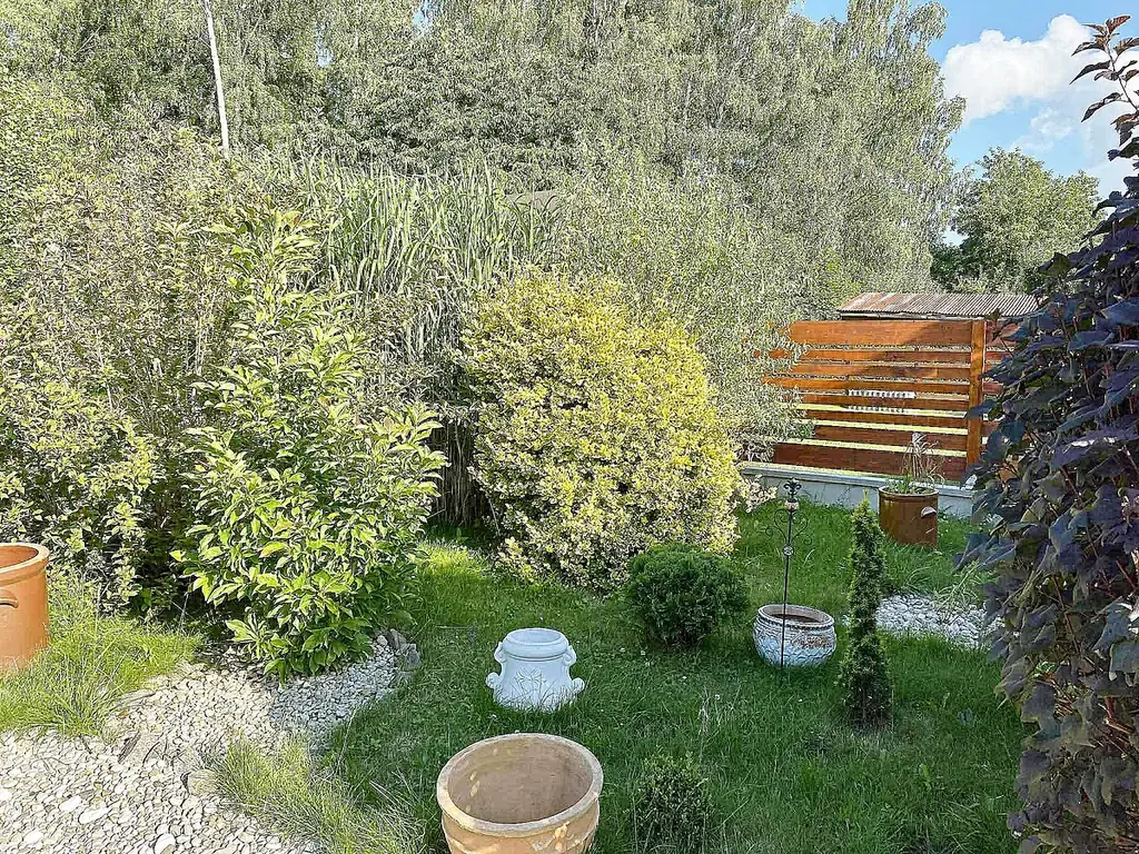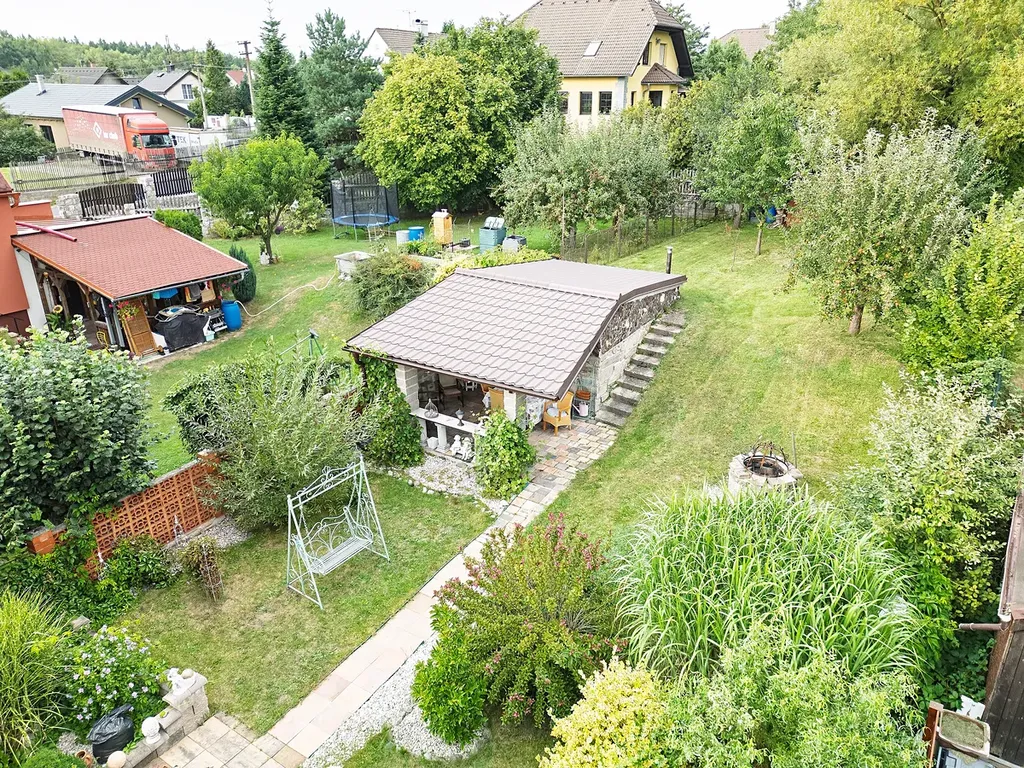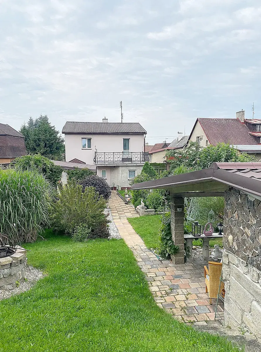 K dispozici je také vlastní garáž a další parkovací možnosti jsou přímo u domu. Celková plocha pozemku je 686 m² s krásnou zahradou o dostačující, méně náročné výměře 438 m², na které se nachází zděný zahradní domek 21 m2 s kuchyní a posezením. Teplo zajišťují kamna a při krásném počasí můžete posedět pod pergolou.