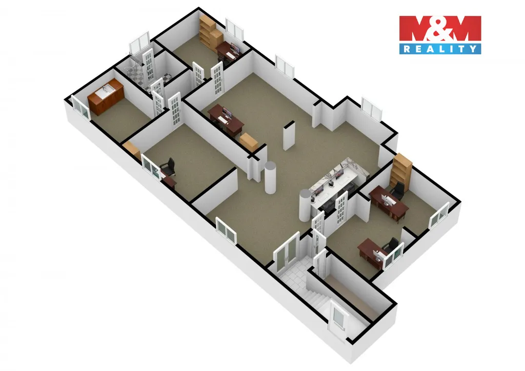 Nabízíme k pronájmu obchodní prostory v centru města Kladna, které jsou vhodné pro obchod, služby, nebo kanceláře. Prostory o celkové ploše 140 m2 jsou tvořeny vstupní chodbou, velkou místností s recepcí, kuchyňkou, koupelnou s WC a sprchovým koutem a několika samostatnými místnostmi.