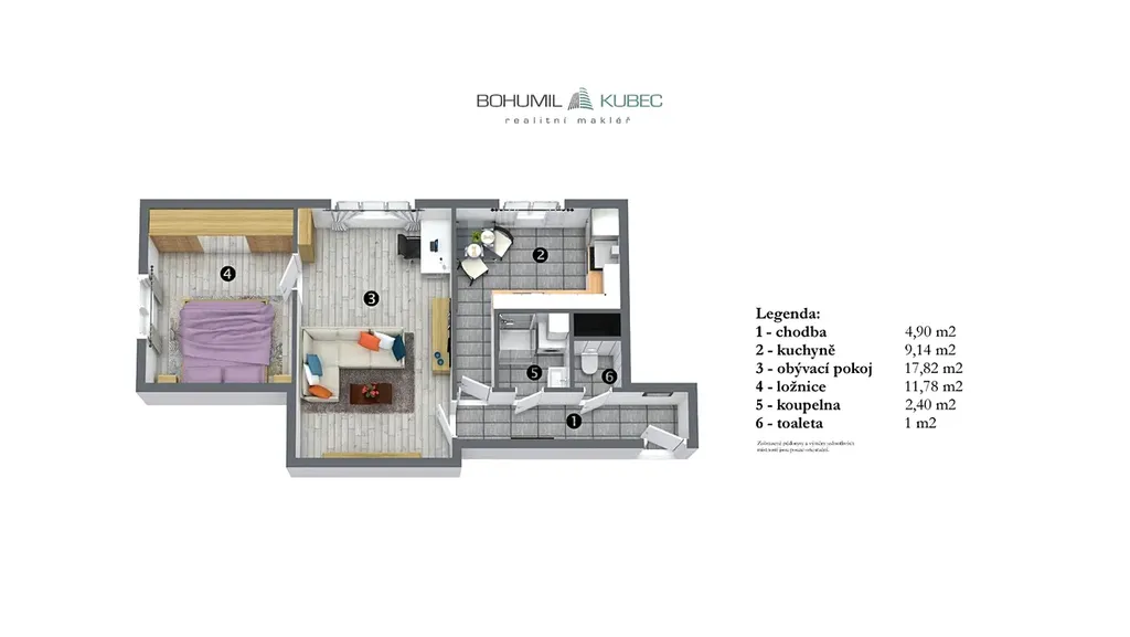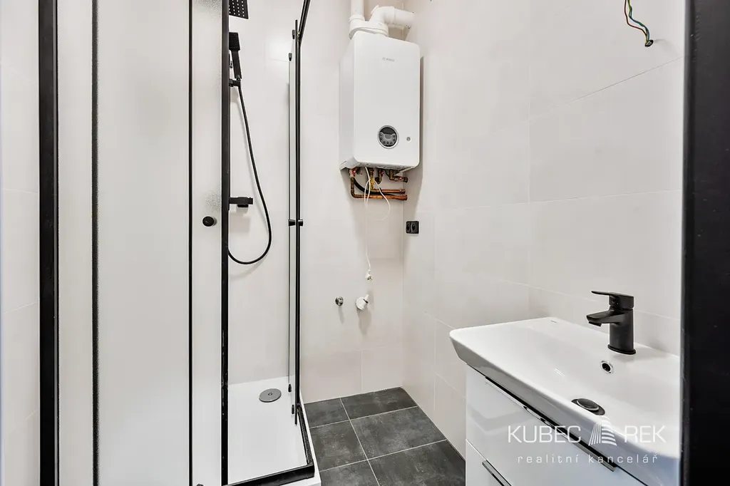 Byt prošel kompletní a velmi vkusnou rekonstrukcí, díky které je připraven k okamžitému nastěhování bez nutnosti dalších investic. Byla provedena nová elektroinstalace, instalována moderní kuchyňská linka včetně spotřebičů a celý interiér působí čistým a sjednoceným dojmem. Na podlahách v obývacím pokoji a ložnici je položeno PVC, zatímco chodba, koupelna a kuchyně jsou řešeny dlažbou v jednotném tónu, což podtrhuje celkovou harmonii prostoru. Byt je vytápěn a ohřev vody je zajištěn vlastním plynovým kotlem. K bytu náleží také sklep o výměře 13 m², který není započítán do podlahové plochy bytu, celková užitná plocha včetně sklepa tak činí 62 m².
