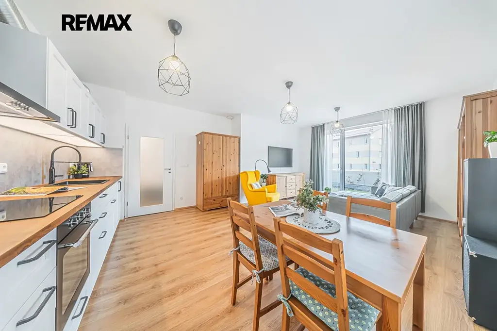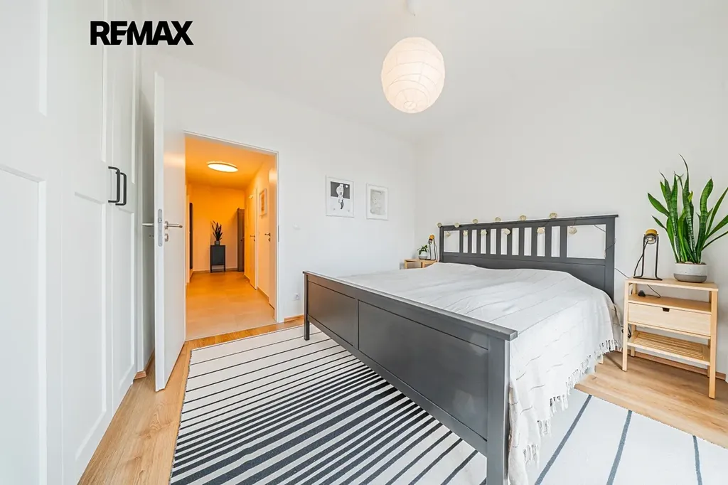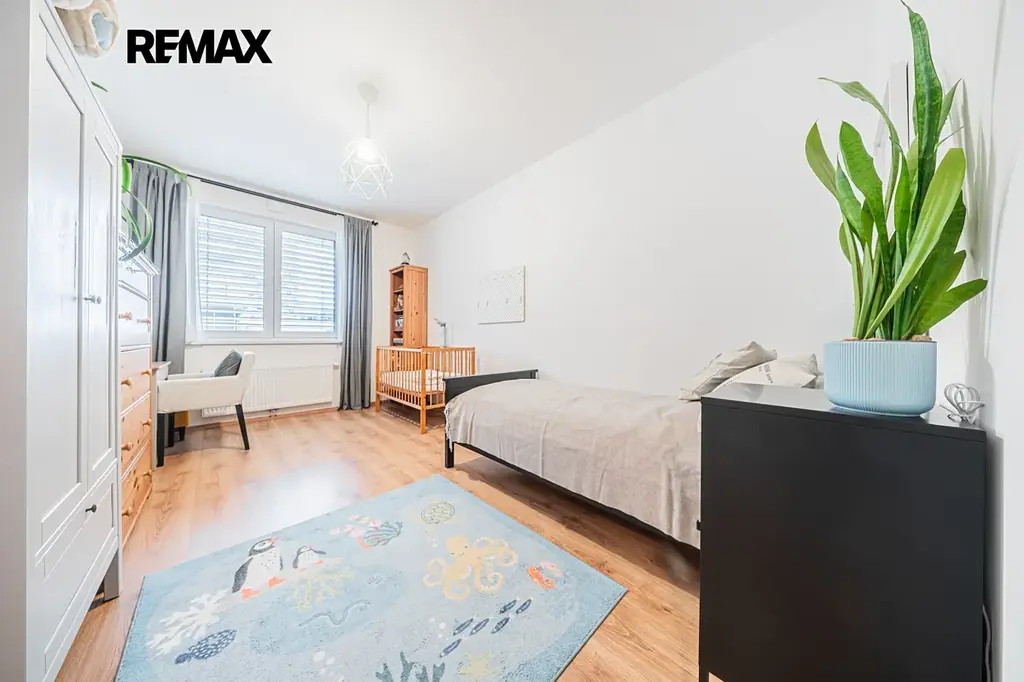 Jedná se o prakticky řešený, prostorný a světlý byt s orientací na jihozápad. Vstup na terasu je možný francouzskými okny z obývacího pokoje i z ložnice. Skleněné výplně tvoří trojsklo, dále pak bezpečnostní folie a elektricky ovládané předokenní žaluzie.