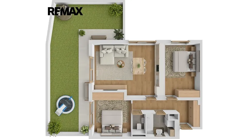 Mezi přednosti této nemovitosti patří bezesporu terasa o rozloze 14,85 m² integrovaná do předzahrádky o velikosti 42,31 m², která je ideálním místem pro relaxaci nebo rodinné chvíle na čerstvém vzduchu. Zahrádka je přímo nad rostlým terénem, není tím pádem tolik omezena váhovým limitem, jako je tomu u střešních zahrad nad užitnými prostory domu. K bytové jednotce dále náleží sklep o rozloze 2,25 m², což zaručuje dostatek úložného prostoru.