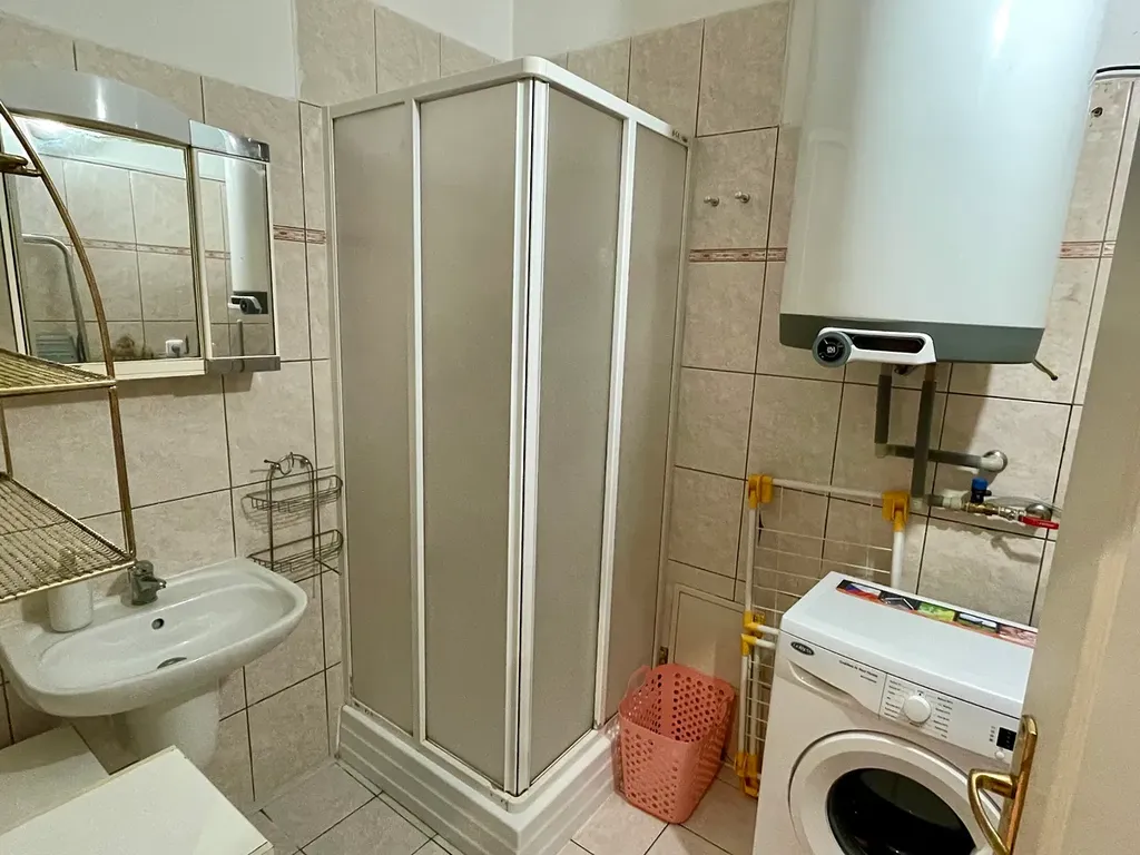 V pokoji je k dispozici sedačka, patrová postel, prostorné vestavné skříně a další základní nábytek. Koupelna se sprchovým koutem, pračkou a bojlerem. WC samostatné. Okna jsou do klidné ulice. Vytápění plynové WAW. Podlahy plovoucí a dlažba. K bytu dále náleží sklepní kóje 2 m2 v suterénu domu.