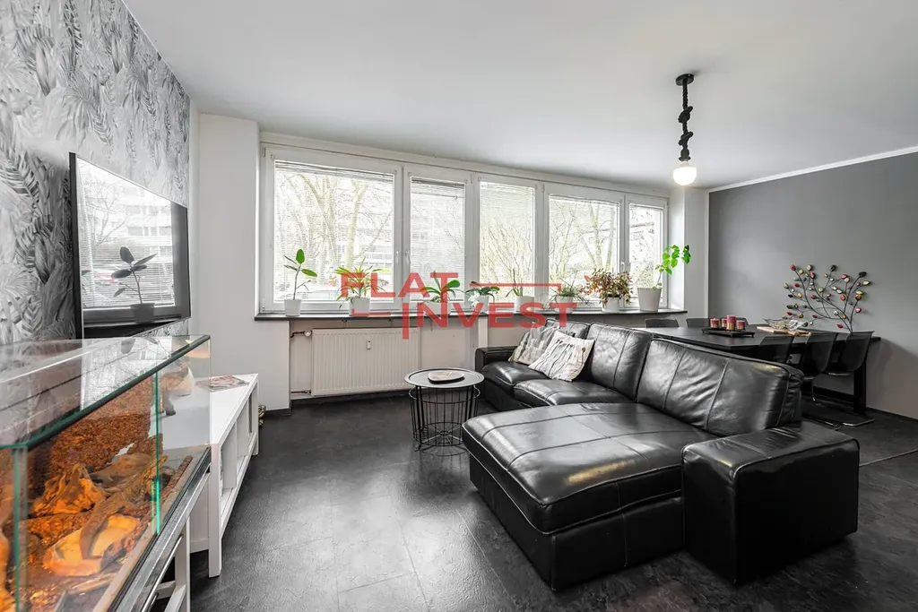 Srdce bytu: Velkorysý obývací pokoj propojený s moderním kuchyňským koutem.