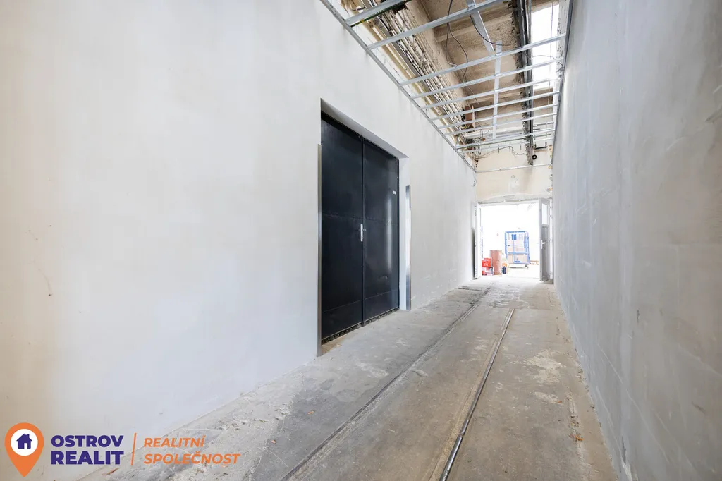 Dispozice a rozměry: Délka: 18,1 m | Šířka: 10,7 m | Výška stropu: 5 m (vhodné pro regálové systémy).