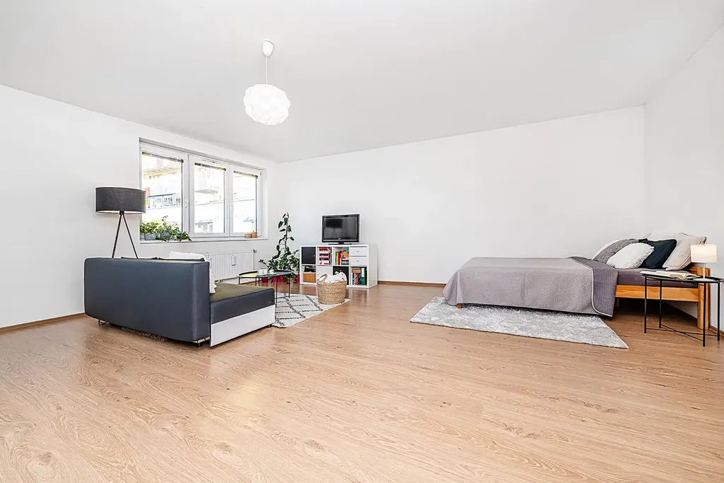 Dispozice je prakticky řešena a nabízí dostatek prostoru pro pohodlné bydlení, součástí je také komora, která poskytuje další úložné místo. Ateliér se nachází v klidném domě a díky umístění ve druhém patře nabízí příjemné soukromí a dostatek denního světla. Byt se prodává částečně vybavený.