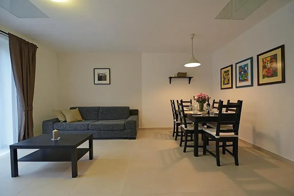 Dispozice přízemí: zádveří, chodba, ložnice, obývací pokoj s kuchyňským koutem. Obývací pokoj je propojený s podsklepenou terasou. V 2.NP se nachází druhá ložnice. Apartmán je kompletně vybavený včetně kuchyňské linky, sedačky, jídelního stolu, postelí, vestavěných skříní, televize, pračka - viz. fota. Apartmán je vybaven klimatizací.