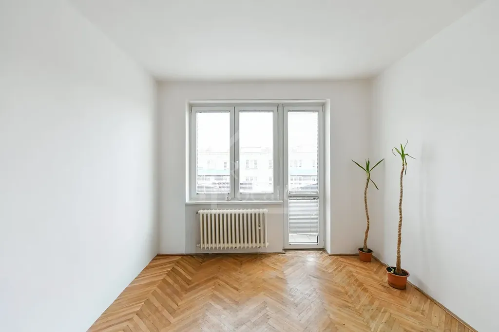 Byt se nachází v 5. podlaží udržovaného cihlového domu a díky orientaci dvou místností na východ a dvou na západ a nabízí příjemné světelné podmínky po celý den.
