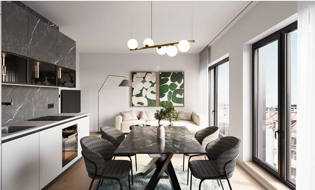 Samozřejmostí je nadstandardní sanitární vybavení a dostatek přirozeného světla, které podtrhuje moderní charakter bytu.