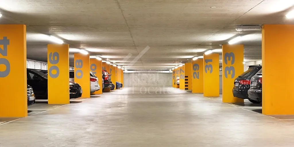 Parkovací místo má rozměry přibližně 16 m² (cca 2,4 × 6,6 m), vhodné pro osobní automobil, včetně SUV.