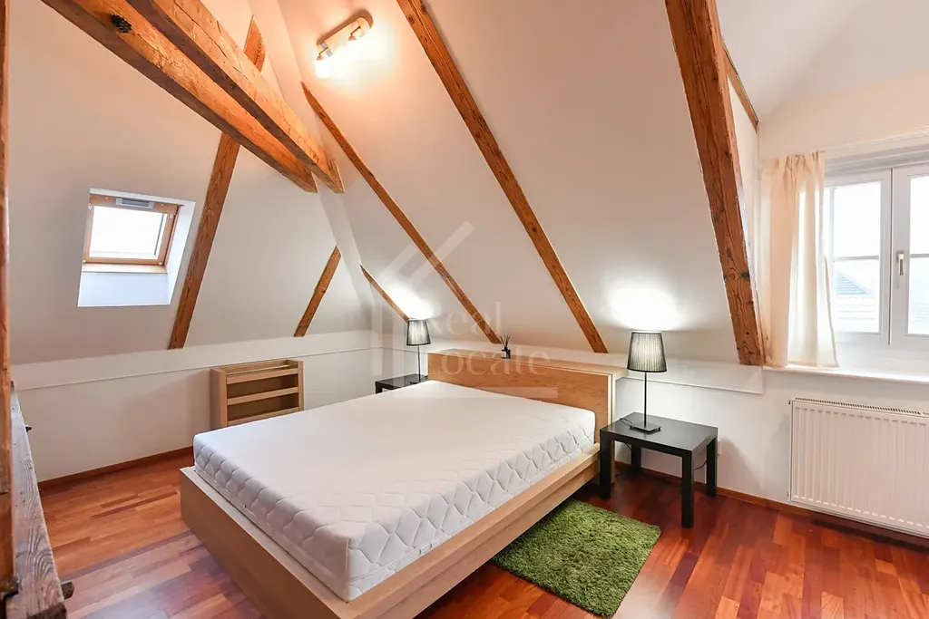 Nabízíme k pronájmu nadstandartní a světlý byt 2kk + balkon + galerie, ve vilové zástavbě v ulici Hradešínská, Praha 10 - Vinohrady. Tento jedinečný, zařízený byt cca (114m² + 4m²) se nachází v třetím patře vilového domu (celkem 3 byty + kancelářské prostory) činžovního domu se společnou krásnou zahradou a 1 parkovacím místem. Byt se skládá s prostorného obývacího pokoje s plně zařízeným kuchyňským koutem a vstupem na balkón. Dále je v bytě atypicky řešená ložnice pro až 4 osoby a také galerie nad obývacím pokojem, která lze využít jako pracovna nebo jako pokoj pro návštěvy. Koupelna s rohovou vanou a samostatná toaleta je přístupná přímo z navazující předsíně. Byt je klimatizovaný a má krásné dřevěné podlahy. Velkou výhodou tohoto bytu je možnost využívat společnou zahradu a vyhrazené parkovací stání. Reprezentativní bydlení v centru města jen pár minut od veškerého občanského vyžití.