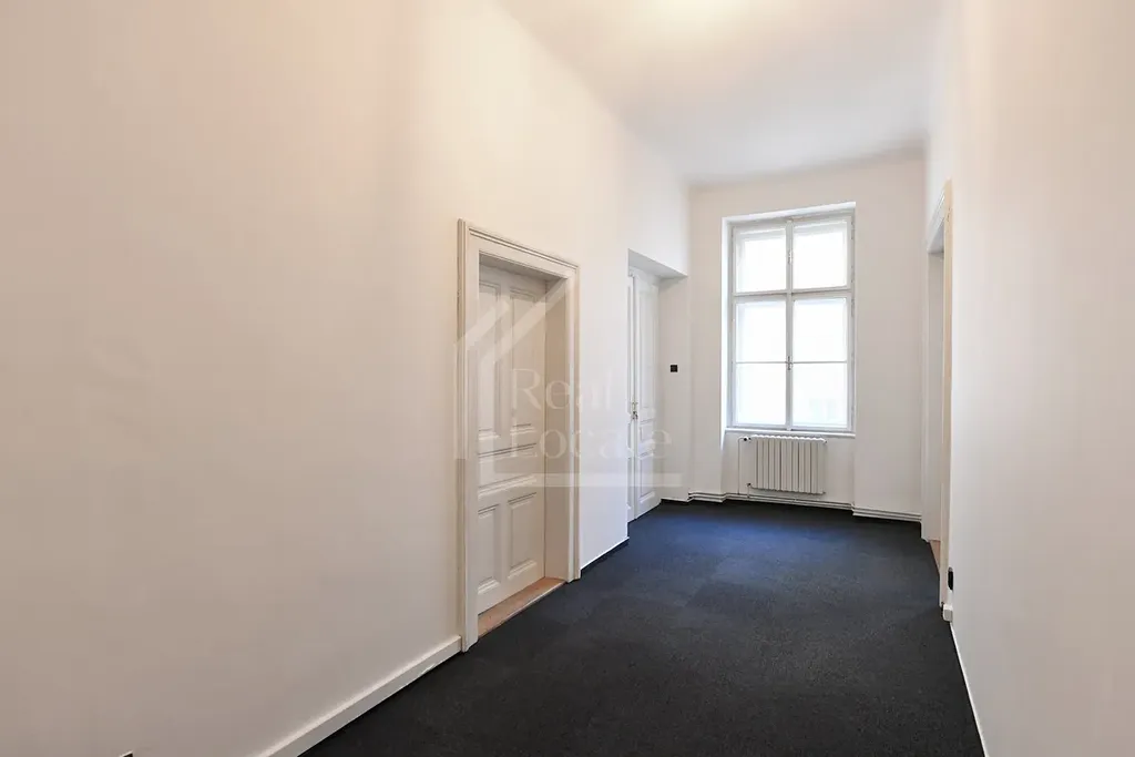Dispozice prostor je velmi praktická – kancelář je členěna do několika samostatných místností a nabízí vše potřebné pro komfortní pracovní prostředí: kuchyňku, toaletu i sprchový kout. Vysoké stropy a velká okna zajišťují dostatek denního světla a příjemnou vzdušnost.