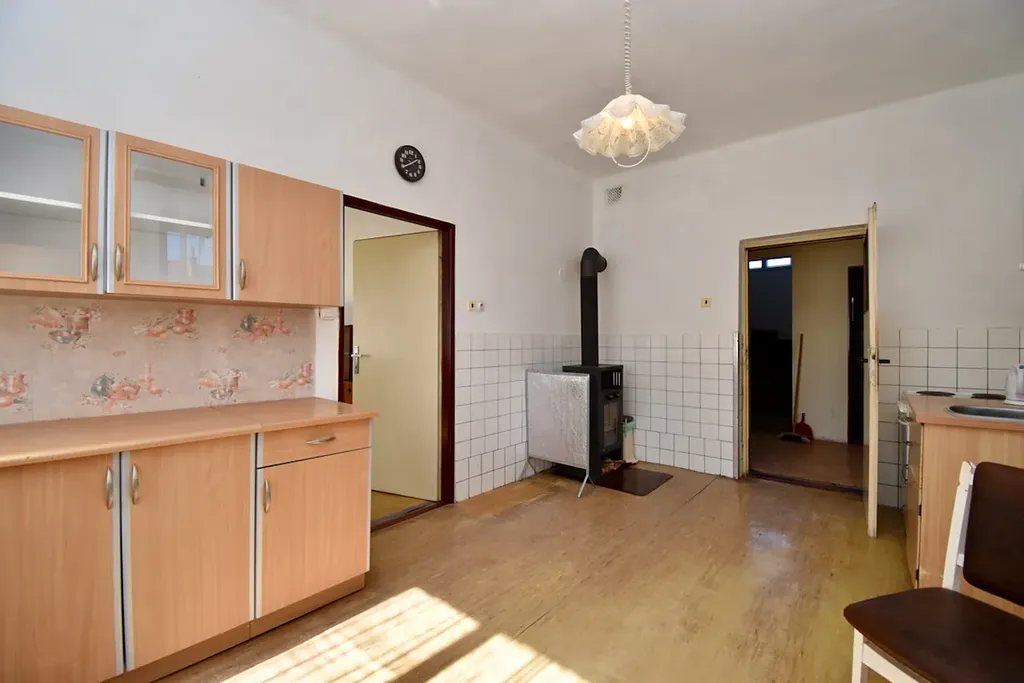 Prostory domu nabízí celkovou dispozici 5+1 se dvěma koupelnami a dvěma wc. Dům je možné využít i jako dvougenerační, v každém podlaží se nachází dispozice o velikosti 2+1, a také je možné jej rozdělit jako samostatné bytové jednotky. Velkou předností domu je potenciál v podobě využití jejího prostoru a možné budoucí rekonstrukce, z hlediska vyšších stropů v přízemí, které nabízí možnost zaklopení veškerých instalací do podlahy i snížení stropů apod., není tak nutné kopání a bourání z těchto důvodů. Celkově je dům v zachovalém stavu, kompletně připravený a vyklizený pro nového majitele. Přidanou hodnotou je na míru kovaný plot v celé délce přední strany pozemku.