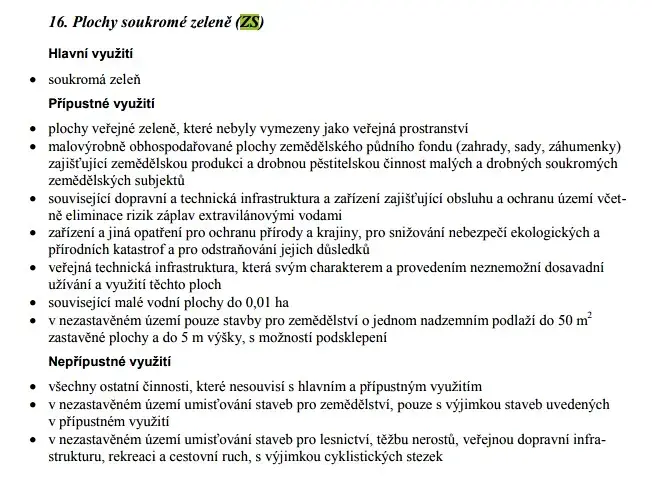 Pozemek je v platném územním plánu obce označen ZS  – soukromá zeleň.