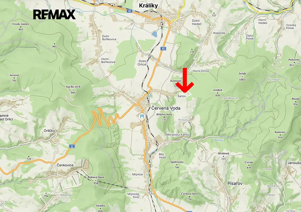 Nabízíme k prodeji pozemek určený k bydlení v části obce Šanov u Červené Vody, obec Červená Voda, okres Ústí nad Orlicí. Pozemek o celkové výměře 1 745 m² se nachází v klidné, mírně svažité lokalitě s výhledy do okolních lesů a horských hřebenů.