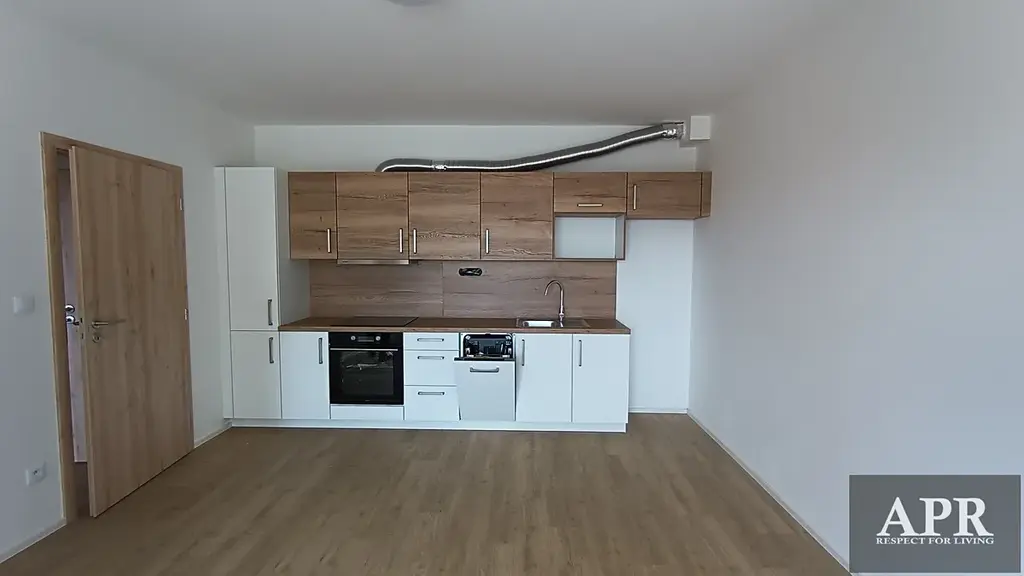 Vybavená kuchyňská linka včetně vestavných spotřebičů a klimatizace, koupelna včetně sanity, vinylové podlahy, interiérové dveře, zárubně, topení v bytě, ústřední, centrální. Plynová kotelna v suterénu BD.