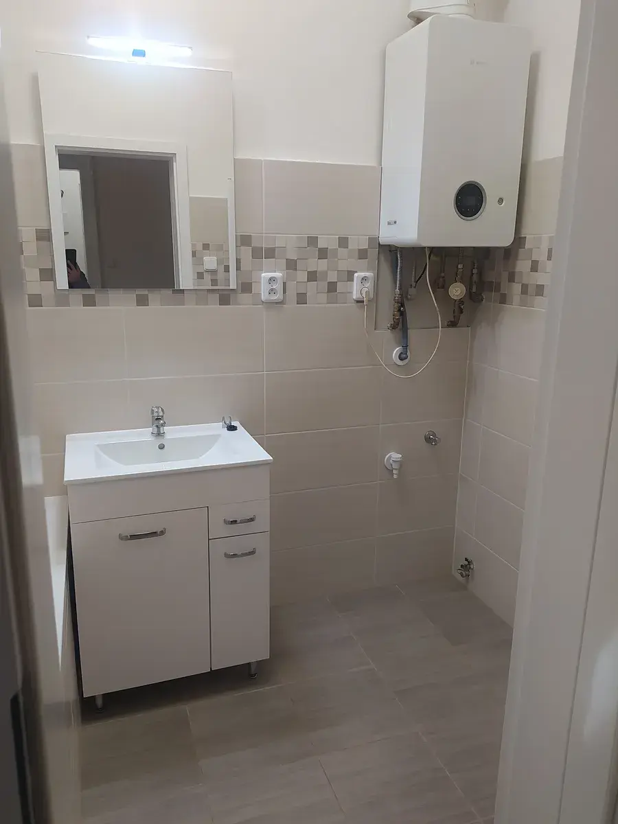 V kuchyni kuchyňská linka, sporák, digestoř. Koupelna s vanou, v koupelně plynový kombinovaný kotel (topení a ohřev vody).