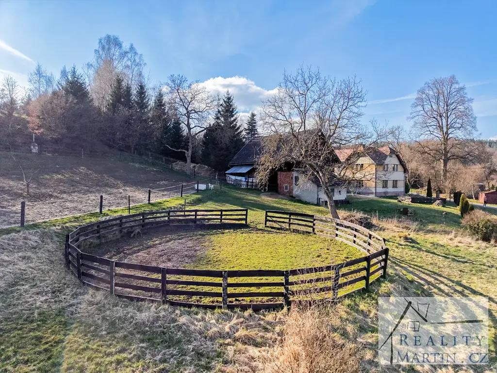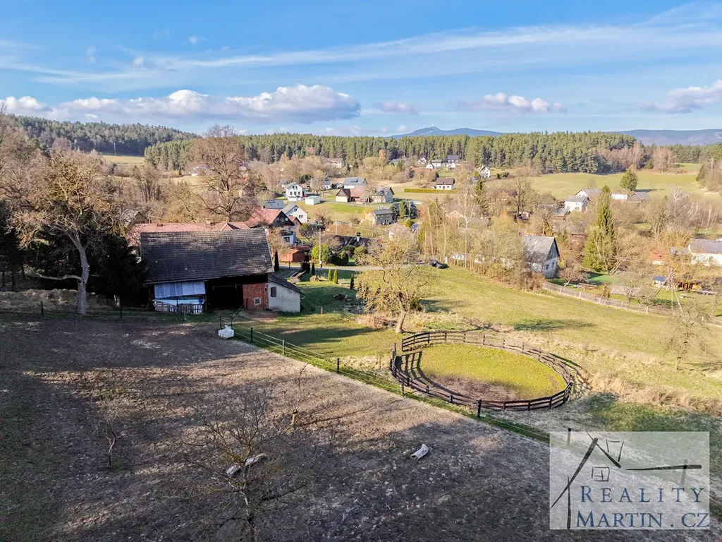 RealityMartin nabízí dvoupodlažní rodinný dům se stodolou (stáj pro koně), kruhovou jízdárnou a velkým pozemkem 8.209 m2 v obci Smržov - Český Dub, okr. Liberec s nádhernými výhledy na Ještěd.