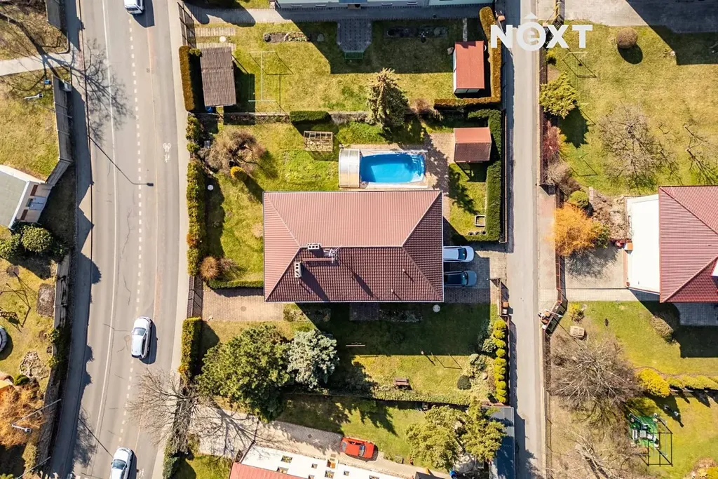 Rozlehlá zahrada o výměře téměř 1 000 m² je skutečnou oázou klidu. Vybudovaný bazén a dostatek místa pro venkovní kuchyni či dětské hřiště dělají z tohoto místa ideální domov pro velkou rodinu.