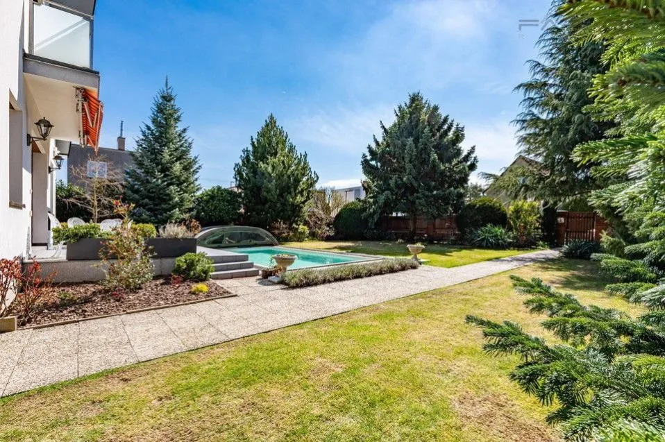 Tato nadstandardní, samostatně stojící rezidence v ulici Havraní představuje ideální spojení maximálního soukromí, bezpečí a reprezentativního komfortu. Vila o celkové ploše 350 m je navržena pro náročné klienty z řad diplomatických sborů a vrcholového managementu. Interiér definuje prosvětlený obývací pokoj s krbem a přímým vstupem na terasu, která plynule navazuje na udržovanou zahradu o rozloze 800 m s venkovním bazénem. Harmonické uspořádání nabízí celkem čtyři ložnice, pracovní kout a druhou společenskou halu v patře, což zajišťuje dokonalé oddělení společenské a soukromé zóny.