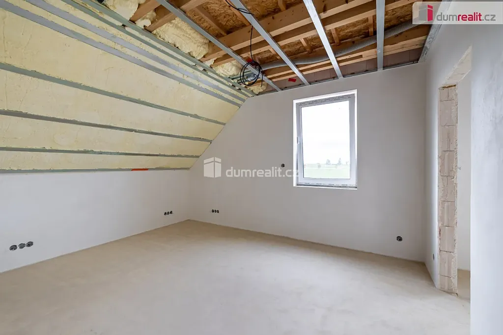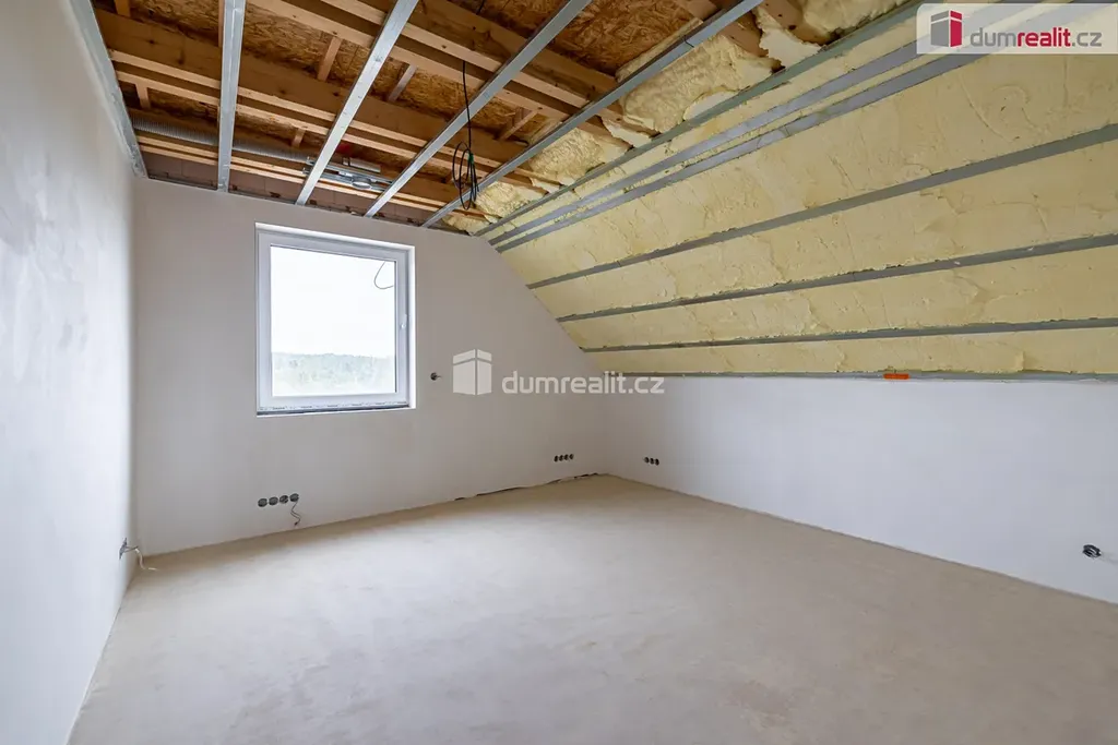 2NP o výměře 84 m²: 3x neprůchozí pokoj z toho jeden se šatnou. Koupelna. Samostatné WC.