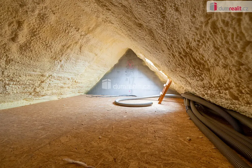 Stiebel-Eltron. Zateplení střechy stříkaný polyreutan. Kvalitní vchodové dveře a okna, s trojskly, prémiové značky Schüco.